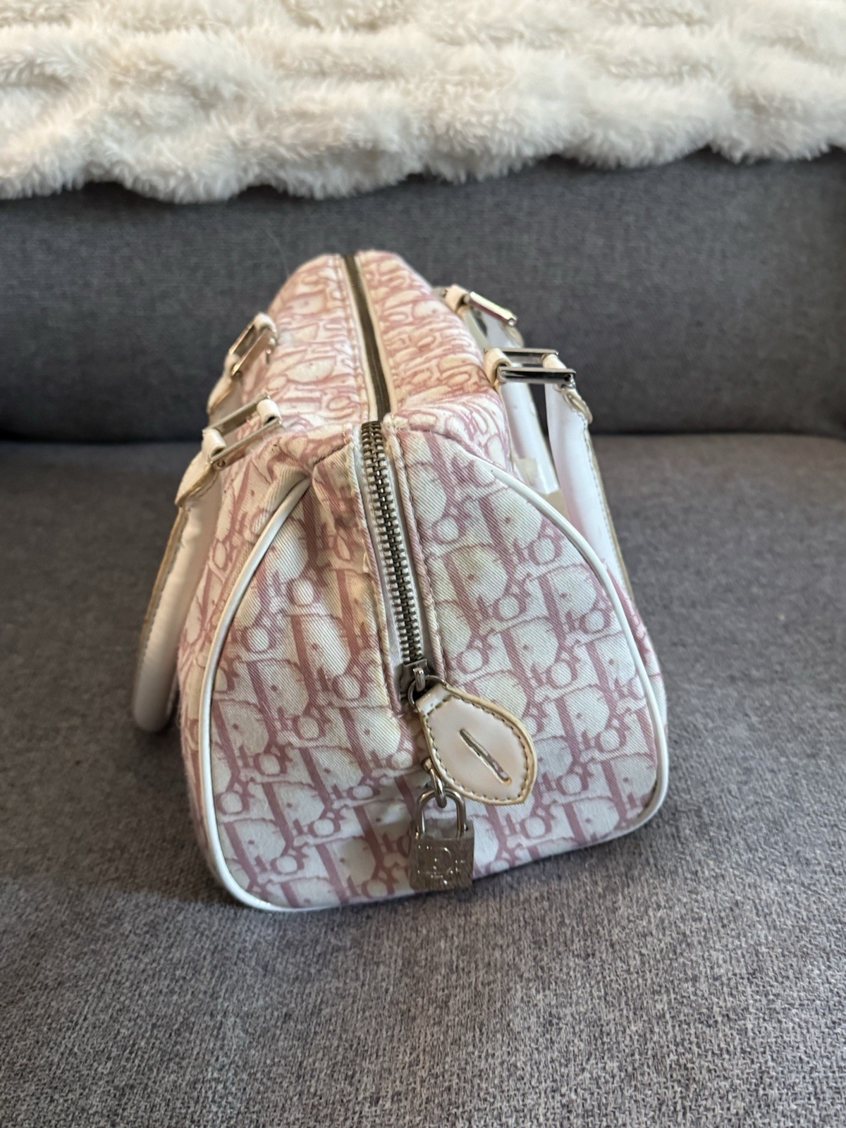 This vintage Dior bag is absolutely stunning! The light pink canvas with the iconic logo is timeless, and the quilted finish gives it such a luxurious feel. The leather handle and zip closure are still in perfect condition—such a rare find for a 2002 piece. It’s effortlessly chic and pairs well with so many outfits. The craftsmanship is impeccable, as expected from Dior, and the made-in-Italy quality shines through. A must-have for any vintage lover!
