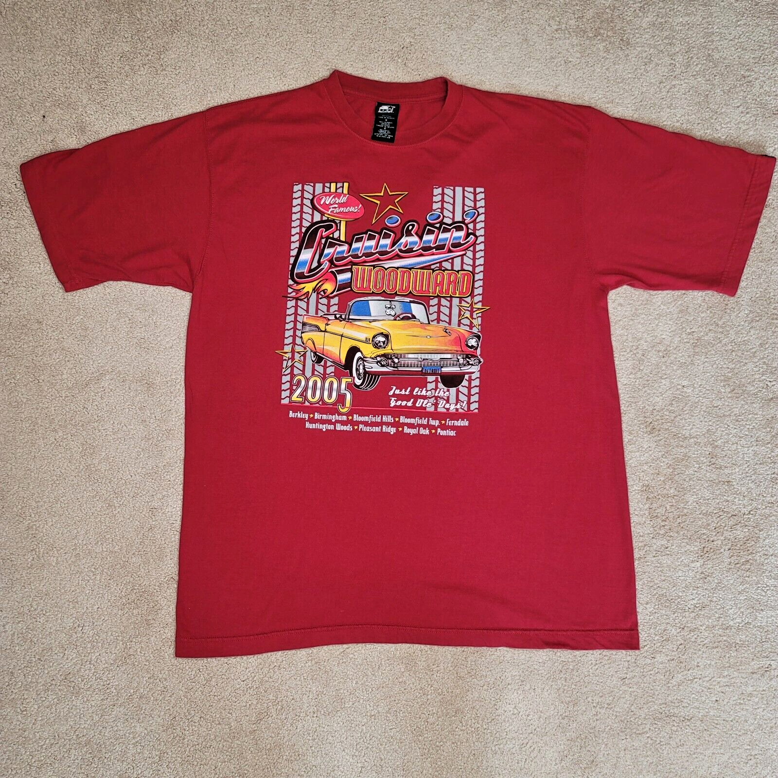 Vintage Team Starter T Shirt Sz XL Red Cruisin Woodward Detroit 2005 Graphic Tee Get ready to cruise in style with this eye-catching Team Starter 2005 Red T-Shirt in size XL. Embrace the nostalgia of Woodward Avenue in Detroit with a striking graphic tee that captures the spirit of classic car culture. Key Features: Unique graphic design celebrating Detroit's iconic Cruisin Woodward event Comfortable and breathable fabric for all-day cruising Size XL for a relaxed fit that suits every car enthusiast Let Your Style Cruise with Class! Transform your wardrobe and make a statement with this exclusive Cruisin Woodward Detroit Graphic Tee. Perfect for car aficionados, vintage enthusiasts, and anyone who appreciates classic car culture. Step into the spotlight and grab this rare piece of automotive history! Get Your Engine Running Today! Don't miss out on this limited edition Team Starter 2005 T-Shirt - a true collector's gem. Drive the streets in style and embrace the essence of Woodward Avenue's iconic cruising scene. Add it to your collection now and let the nostalgia ride!