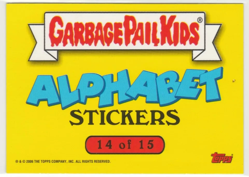 Alphabet Stickers #14 Z T Garbage Pail Kids GPK chase insert SP short print personal stock images centering of cards may vary compared to listed images condition Excellent or better