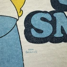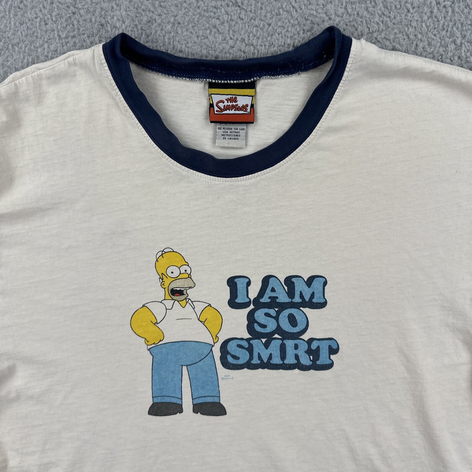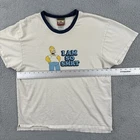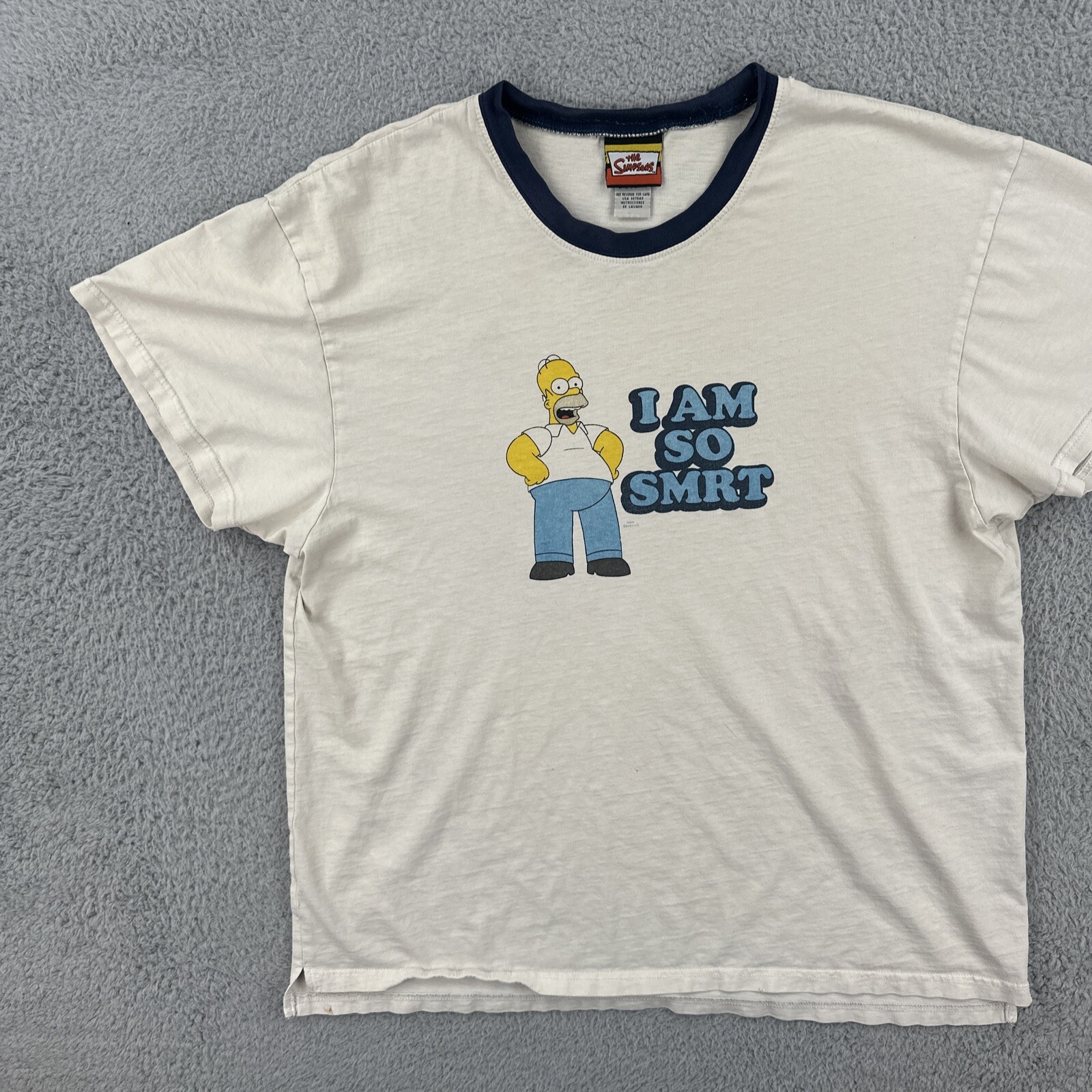 This vintage The Simpsons T-shirt features a solid white color with a crew neck and short sleeves. Made of cotton knit fabric, it has a regular fit in size L. The tee showcases characters Homer Simpson and Matt Groening in a cartoon theme, making it a fun addition to any wardrobe. Easy care and suitable for all seasons, this 2007 ringer shirt is a nostalgic piece for fans of The Simpsons. Small holes on shoulder and small stains see pictures See pictures for pictured measurements compare with your favorite garment and ask questions if you have any Add to your collection today Browse my other items I can combine shipping