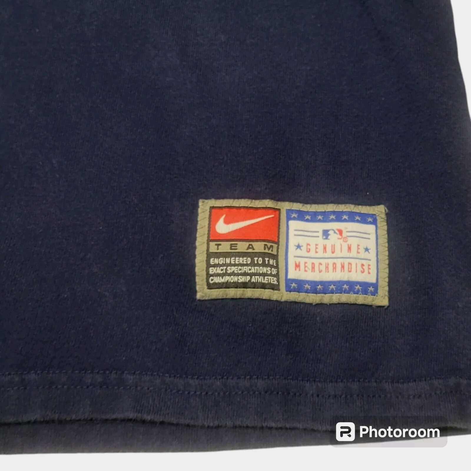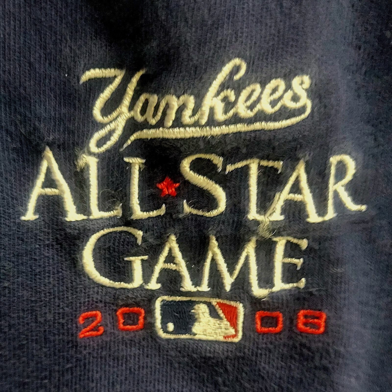Show off your love for the New York Yankees with this vintage Nike Team Center Check Swoosh Y2k 2008 ALL STAR GAME LS shirt. This officially licensed shirt is perfect for any Major League (MLB) baseball fan. The blue shirt features the iconic Nike Swoosh and the New York Yankees team logo, making it a must-have for any fan of the team. The shirt is available in size XL and is designed for men. It is perfect for wearing to the MLB All-Star Game or for everyday wear. Get this unique shirt now and show off your love for the New York Yankees!