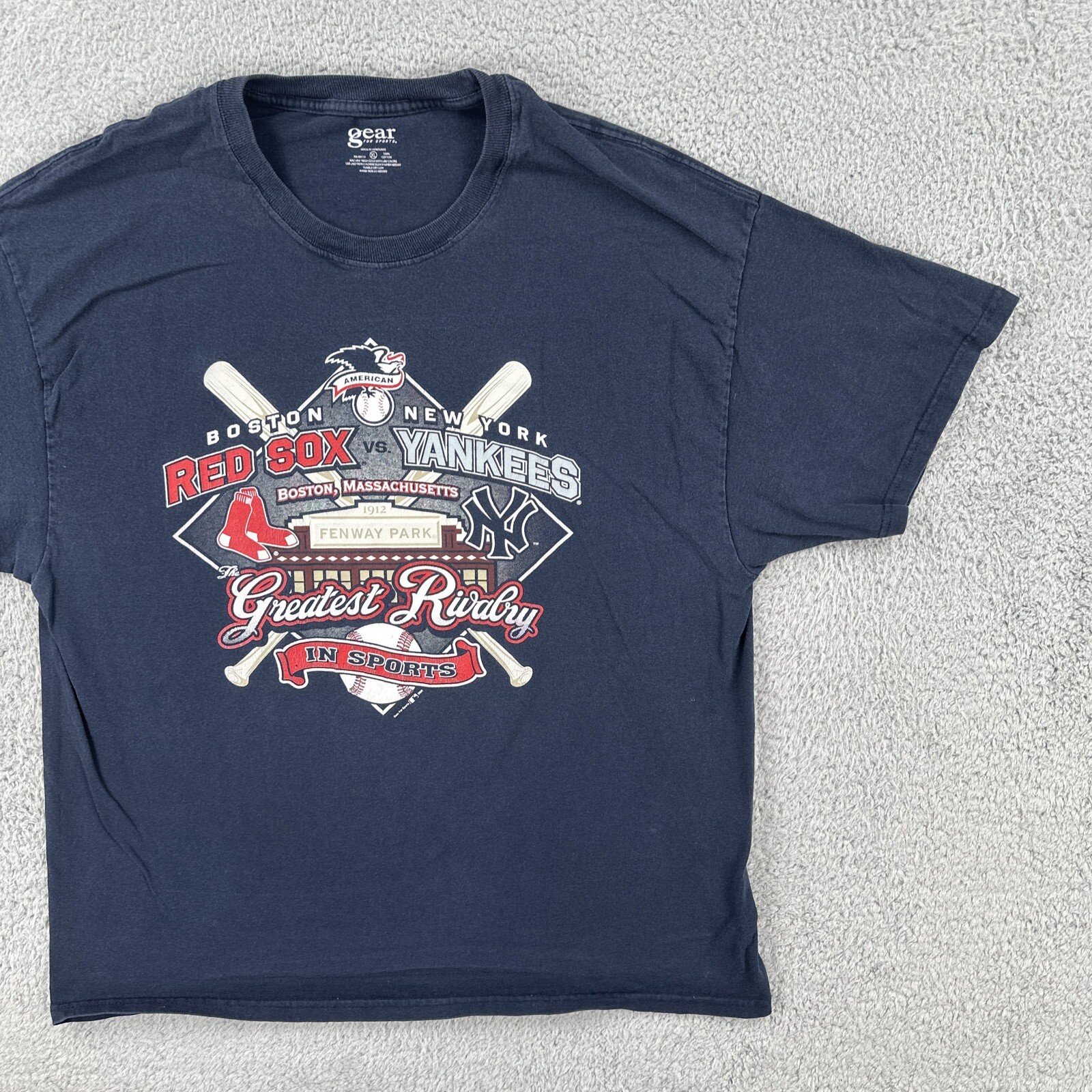This vintage T-shirt is a size XL in solid red color with short sleeves and a crew neck. Made of cotton knit fabric, it features the Boston Red Sox and New York Yankees logos from 2008. The brand is GEAR FOR SPORTS, and it has a regular fit suitable for all seasons. Perfect for sports enthusiasts and fans of these baseball teams. No holes or stains See pictures for pictured measurements compare with your favorite garment and ask questions if you have any Add to your collection today Browse my other items I can combine shipping
