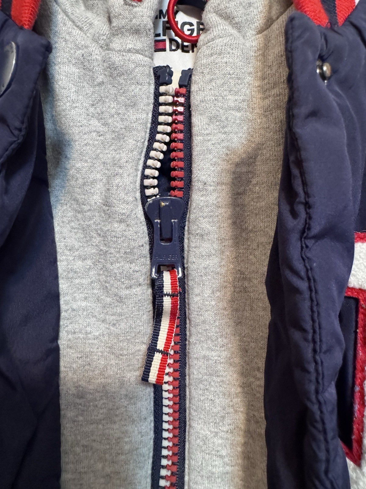 Snaps have significant paint worn off. The H patch is slightly worn. The rest is in great condition. SEE PHOTOS FOR CONDITION BEFORE PURCHASING! Measurements: Pit 2 pit 24” Shoulders 17” Sleeves 24” Length 25”