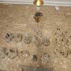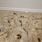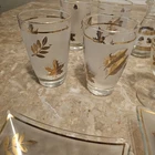 This is an impressive and rare vintage 22-piece barware set, genuine Mid-Century Modern (produced between 1953 and 1978). The pattern, known as "Golden Foliage," features an elegant 22-karat gold leaf design on clear and frosted glass and is an exceptional find for collectors. Set Details (22 Total Pieces) Piece Type Quantity Capacity Large Goblets 9 7.5 oz Small Goblets 2 3.5 oz Tumblers (Glasses) 4 8 oz Large Pitcher (Decanter) 1 44 oz Small Pitchers (Auxiliary Decanters) 2 5.5 oz Square Glass Trays 3 N/A Salt Shaker (or Pepper Shaker) 1 N/A •Condition & Important Notes As is to be expected with vintage items from this era (over 40 years old), the set shows light wear consistent with age and use. Paint/Gold: There are tiny scratches on the paint of the goblets, and the top gold rim is slightly fading on some pieces. Integrity: There are no signs of chips, cracks, or cloudiness in the glass. Authenticity: The condition of the gold is a common indicator of age and adds vintage character to the set. High-resolution photos show the actual condition of each item. The set is ready to be carefully packed and shipped securely (double boxing recommended for fragile glassware). please feel free to ask me any question about this set.