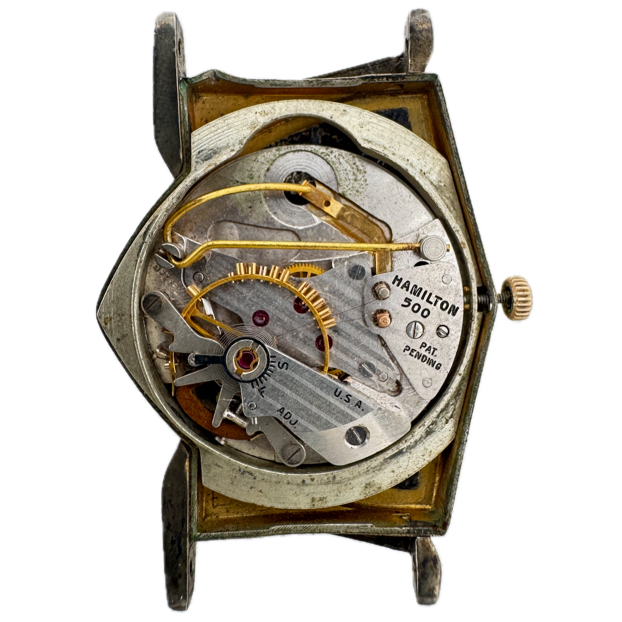 Vintage 31mm Hamilton Electric Pacer Men's Wristwatch 500 10k GF No Case Back Product Description Item: Wristwatch Brand: Hamilton Model: Electric Pacer Case Material: 10k GF Production Year: 1961 Country: USA Gender: Men's Caliber: 500 Size: 31mm Product Measurements Diameter: 31mm Lug Width: 17.5mm Lug to Lug: 45mm Thickness: 11 mm Product Condition Overall Condition: Poor, overall condition for its age. Functions: Not running, has been tested and is not running. Case: There are scratches on the case. Crystal: There are scratches on the crystal. Dial: The dial has hairline crack(s) on it. Crown: The crown is worn. Hands: It is missing the second hand. Additional Information: Missing case back About the brand: Producing their first pocket watches in Lancaster, PA as early as 1892, Hamilton watches are one of the most recognizable American watch brands. While they moved production of their watches to Switzerland in 1969, the American catalog of Hamilton watches is impressive. Recognizable models such as the Ventura, worn by Elvis Presley, and their WW2 military issue “Khaki” watches, Hamilton still enjoys a large presence in the market today. Offering both well made modern pieces and a backlog of wonderful vintage items - Hamilton offers much for the vintage and modern collector.