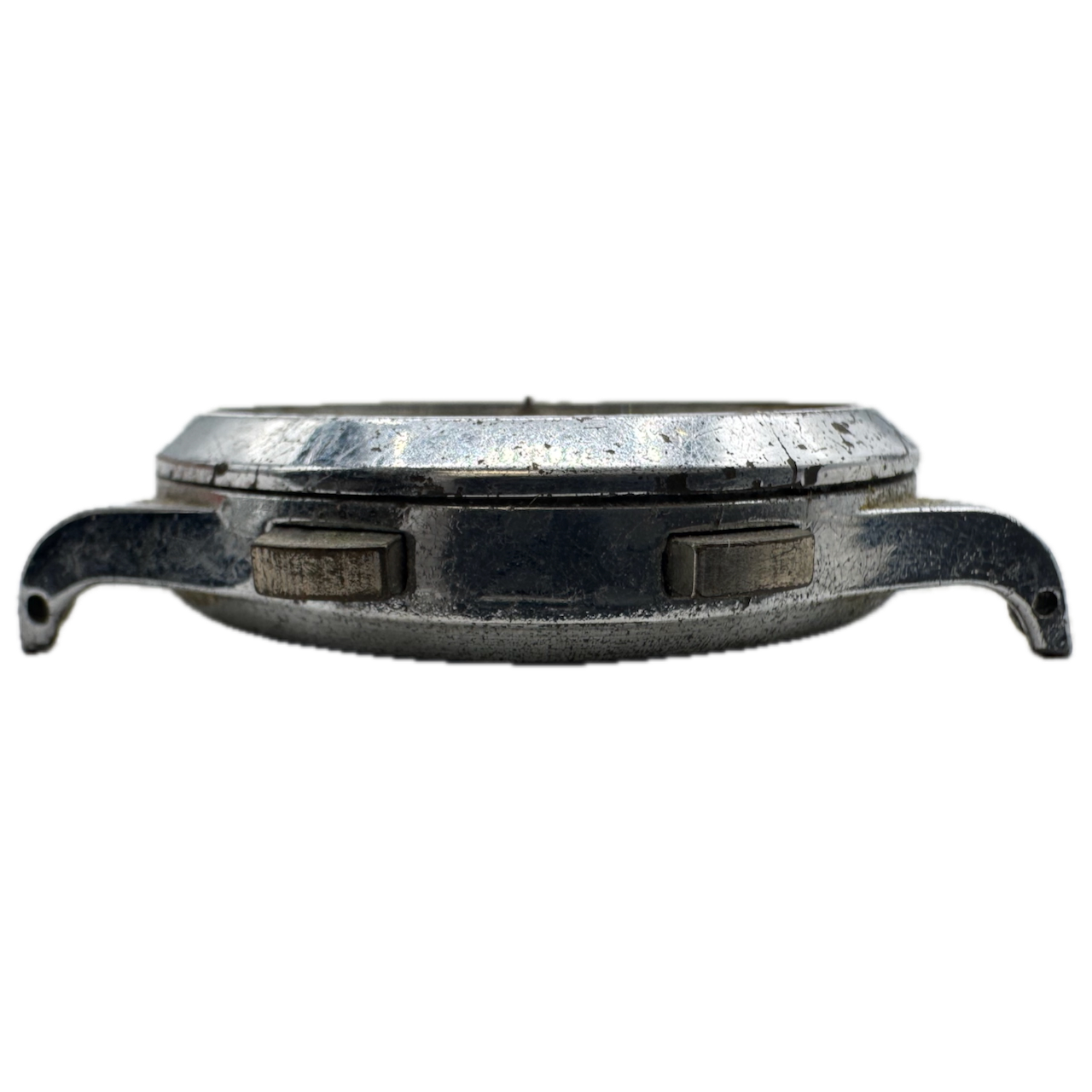 Vintage 34mm Fara Sport Men's Basic Chronograph Wristwatch USA Chrome Plated Product Description Item: Wristwatch Brand: Fara Model: Black Dial Movement: Basic Chronograph Case Material: Chrome Plated Country: USA Gender: Men's Size: 34mm Product Measurements Diameter: 34mm Lug Width: 18mm Lug to Lug: 41mm Thickness: 10 mm Product Condition Overall Condition: Poor, overall condition for its age. Functions: Not running, the Balance staff is broken. This item has not been fully inspected. Internal components may be damaged or missing. No guarantees are made regarding completeness or functionality of the movement. Case: There are scratches on the case. Crystal: It is missing the crystal. Dial: The dial has discoloration. Crown: It is missing the crown. Hands: The hands have rust on them.