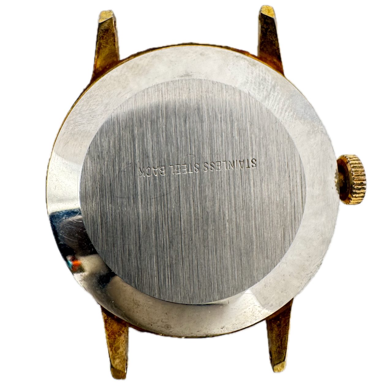 Vintage 34mm All American Nixon Floating Eye Men's Mechanical Wristwatch Product Description Item: Wristwatch Brand: All American Model: Marcel Lusa Movement: Mechanical Case Material: Two Tone Country: Swiss Jewels: 1 Jewel Gender: Men's Size: 34mm Product Measurements Diameter: 34mm Lug Width: 16.5mm Lug to Lug: 40.5mm Thickness: 10 mm Product Condition Overall Condition: Fair, overall condition for its age. Functions: Not running as it is for parts. This item has not been fully inspected. Internal components may be damaged or missing. No guarantees are made regarding completeness or functionality of the movement. Case: There is discoloration and scratches on the case. Crystal: There are scratches on the crystal. Dial: The dial is in good condition. Additional Information: It has some rust on the movement.