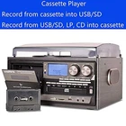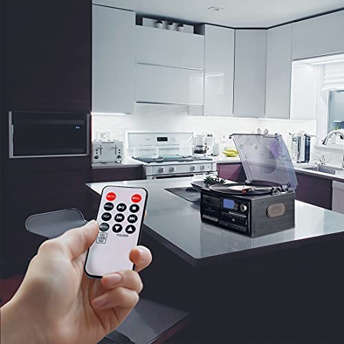 Return Policy Fast Delivery Trusted seller Vinyl Record Player 9 in 1 3 Speed Bluetooth Vintage Turntable CD Cassette Player AM/FM Radio USB Recorder Aux-in RCA Line-Out (Black Edition) Product Description 33, 45, 78 RPM speed options. Includes a 45 adapter to play 7” LP.Automatically pause and stop,protect your vinyl when all the music ending. The dust cover prevents dust from accumulating on vinyl records. Built-in 2 high quality speakers, with amplifiers processing audio output, this wood record player sounds amazingly richer and louder without any distortion. Headphone jack makes you enjoy yourself in your music world.RCA line out could add your an amplifier or active speaker to improve the sound. Recording vinyl to MP3 or cassette, let you have more ways to listen to your vinyl record. Blue LED light display makes you to view the working situation in any mode more easily. Including remote control,Make it easier to control the record player. You can remotely control mute, play / pause music, switch modes, and so on. This turntable player includes CD player, cassette player, FM AM Radio, USB SD MMC player.A variety of players can meet your various requirements. The versatile design saves you space and money without having to buy other playback devices. Wireless Connection: Bluetooth can connect your mobile phone, tablet, mp3 player, computer and other Bluetooth devices to play your favorite music. Wired Connection: The Aux in jack makes this turntable player connect your music player more quickly and easily. Shipping Returns Payment Shipping Shipping is FREE to all addresses other than APO/PO boxes in the lower 48 states. All our stock ships from US-based warehouses. Shipped via USPS or UPS (depending on location and package weight) Unless stated otherwise, all orders will ship within 24-72 hours of your payment being processed. Check our feedback to see the great reviews of FAST shipping we offer. Returns Seller does not accept returns Payment We currently accept payment via eBay managed payments only. Once payment is cleared, we will dispatch your shipment within 1-3 business days. Please refer to the "Shipping" tab for more information regarding shipping speed to your destination.