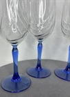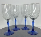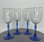 Vintage Lenox Crystal Wine Glass Set includes four round glasses with cobalt blue stems, with a dual swag draped design and gold rims. Hand-blown in 1980's, these 9 oz glasses feature an Art Deco style. The elegant design is perfect for all occasions. A luxurious addition to any glassware collection, these wine glasses were manufactured in France and together they weigh about 4 lbs. Vintage 4 Lenox Crystal Blue Stem Wine Glasses Dual Swag & Gold Rim - 1980's, these are in excellent vintage pre-owned condition, with NO chips, cracks or repairs. Please review all pictures for proper assessment of their excellent vintage pre-owned condition.