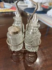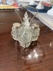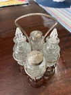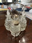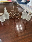 1919 – Vintage 4 Piece Crystal Cruet Set in SilverCaddy Salt Pepper Oil Vinegar Th is is in used preowned condition. Seehigh quality pictures for details. I will gladly combine shipping on multiple items, just ask fordetails. Shipping via USPS. My goal is 100% customer satisfaction so please contact me with anyproblems before leaving negative feedback Unlike some sellers – I do NOT over charge for shipping – all shipping iscalculated by weight via USPS. Shippingcharges listed are for the Continental United States ONLY! Many of the items in my store are very light and there are min. chargesfor shipping so please browse, fill your cart and inquire about a quote I do my best to describe the items I’m selling, but I am not an expert,so please feel free to ask questions. An extremely high percentage of my items are vintageand/or antique Vintage items are objects made prior to 1990 and havesmaller flaws indicative of normal use and age Please examine the photos carefully to make sure the itemis acceptable to your expectations prior to buying Returns accepted with buyer paying shipping cost if item Please take a look at my store on Ebay: Mygrandmahadthat1 Seller Names: Mygrandmahadthat1 Mygrandmahadthat2 and Mygrandmahadthat3