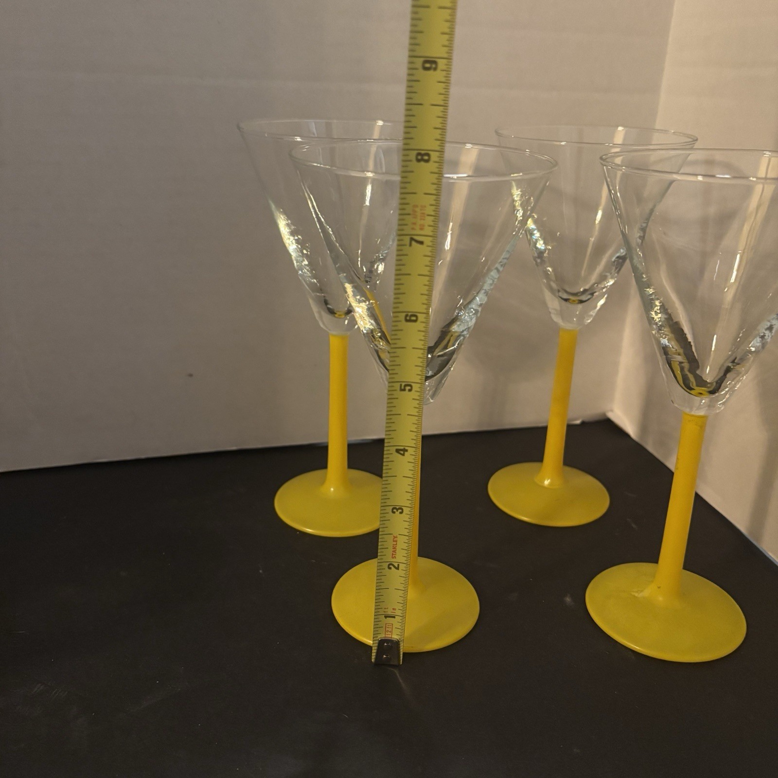Vintage Set Of 4 8" tall Martini Glasses Stunning Egg Yolk Yellow Stems. Condition is Used. Shipped with USPS Ground Advantage.