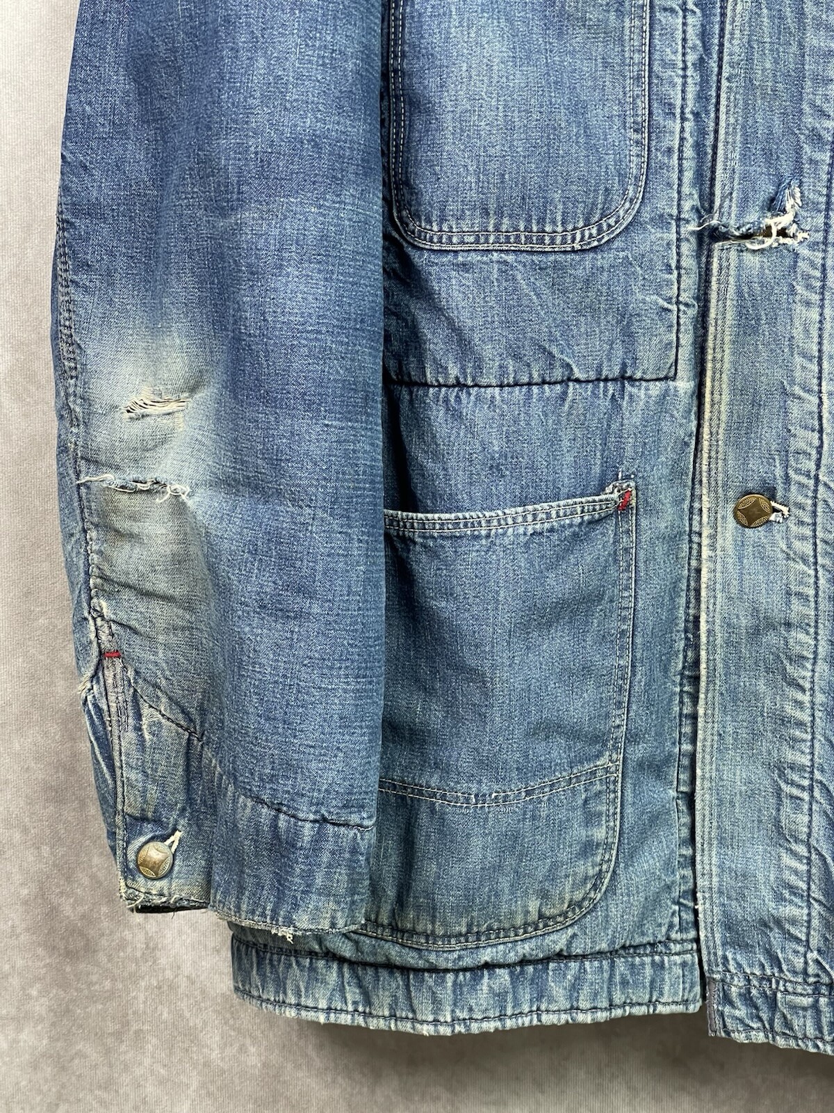 Size: No size tag, fits XL Please Check pictures for measurements Condition: Distressed used condition, various stains, holes in sleeves/pocket/button area, lining top has a hole, heavy wear Used Item Either Modern or Vintage may have Stains/Pinholes lightly visible in pictures, please inspect pictures or message before purchase! Shipping Ships 1-3 days after purchase Usually take 2-5 days for updates from the delivery service Please Look Over The Measurements, Details In Pictures Before Purchase Please Message With Any Questions Before Purchase No returns accepted, all sales final Thank You For Looking