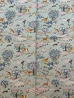 This vintage 50's MCM fabric remnant features a charming animal print pattern with deer, sheep, and ducks, perfect for quilting and crafts projects. Made of light weight cotton fabric in a green color, this 37" x 45" piece is suitable for creating unique and nostalgic pieces with an antique/vintage touch. Ideal for those looking to add a whimsical touch to their creations, this fabric remnant offers a piece of history with a fun animal theme.