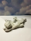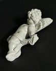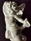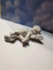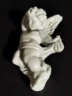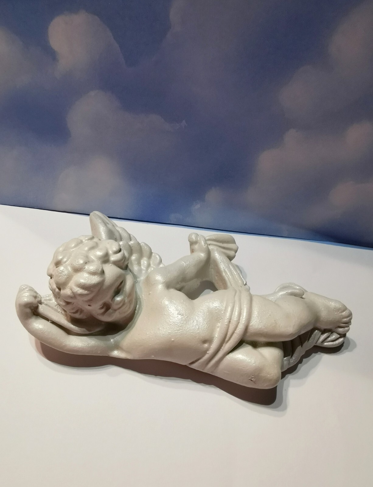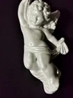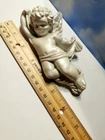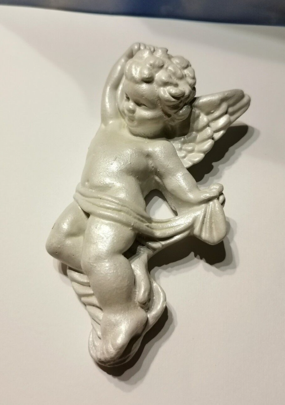 Chalkware Cherub/Angel Figurine Wall Hanging, MCM Decor. This little plaster cherub has a wire loop on the back for hanging and is painted a glimmering metallic white. It's in great condition, no cracks or damages. The indentions on the back are where the wire hanger was inserted into the plaster while it was still in the mold. Please see the photos for details of condition and measurements. Thank you!