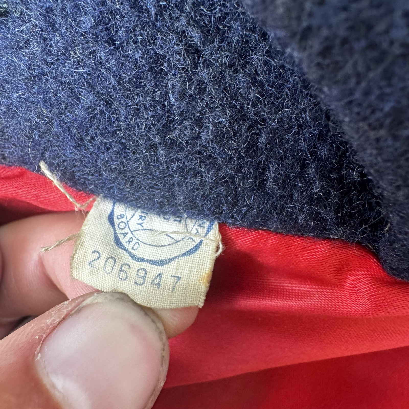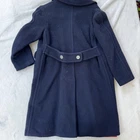 Vintage Ancuna Coat Womens Medium Navy Blue Wool Button Front Made in USA 60s Condition: Fair vintage condition. Moderate wear with flaws present including stains and discoloration on the red inner lining, as well as visible seam splitting and tear by the armpit area (see photos). The interior lining shows significant discoloration and water marks, and there is a stain at the lower lining hem. Shell: Wool (tag reads "Contains no linen") Fully lined in red fabric interior with interior waist reinforcement 3 white front buttons; not all buttonholes are present Classic 1960s mod style overcoat with two front flap hip pockets, notched collar, and single vent back with belt detail Tag: Continental Trade Mark Ancuna Size tag not visible; based on measurements, best fits Womens Medium (see below) Approximate flat measurements: - Pit to Pit: 17.5 inches - Back length (collar seam to hem): 33.5 inches - Sleeve length (shoulder seam to cuff): 19 inches Made in USA Union Label: National Coat and Suit Industry Board #206947 (indicative of 1960s era) Perfect piece for collectors, restoration, or a retro wardrobe with bold style