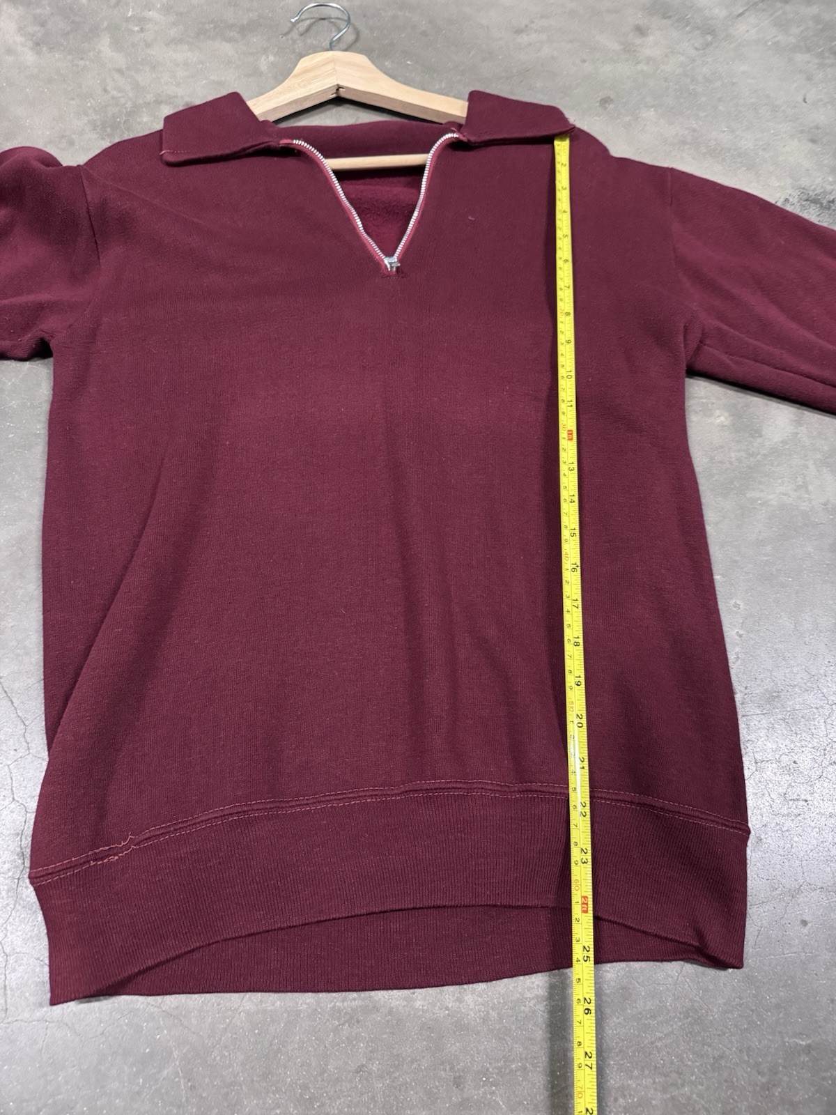 This Vintage 60s/70s Maroon Quarter Zip Pullover Sweatshirt in Men’s Size M/L is a stylish and comfortable addition to any wardrobe. Made from cotton with long sleeves, this solid red sweatshirt features a zip closure and is machine washable for easy care. Perfect for winter, fall, or spring, this vintage sweatshirt is great for casual wear or walking activities. The vintage brand adds a classic touch to this pullover, making it a versatile and timeless piece.