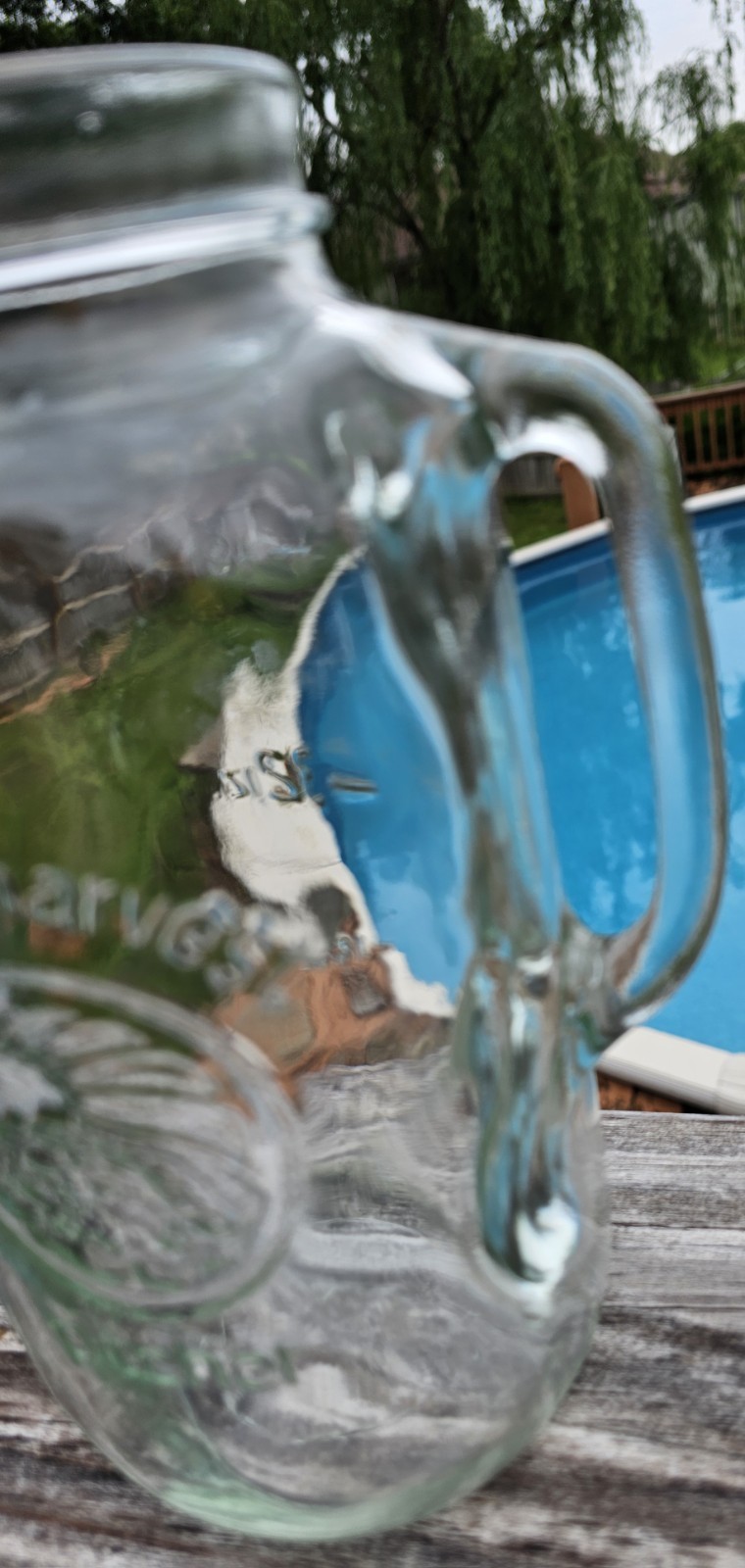 Vintage Golden Harvest 9" Mason Jar Clear Glass Pitcher, 64-oz., 1970's? Vintage Golden Harvest Cold Drink Pitcher - Country farm look, Horn of plenty logo, 1970's look with canning jar theme - clear glass - 9" tall and holds 64oz., - Overall great used condition for its age, no chips or cracks, normal wear, ***DISCLAIMER: *PLEASE VIEW ALL PHOTOS & READ FULL DESCRIPTION *I inspect each item myself & try to list any & all defects that I see. *All measurements are approximate. *True color may vary from screen to screen & light to light. *Please feel free to ask any questions before bidding. *Items come from a Smoke-Free home. *Shipping available within the Continental United States. ***Possible discounted shipping available if multiple items are purchased within a reasonable time of each other*** *If you are not satisfied with any aspect of your purchase, Please contact me before leaving negative or neutral feedback. I want you to be happy with your purchase!! *THANKS FOR LOOKING!!!