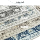 This is a printed vintage area rug with a classic pattern and color scheme; The surface is made of imitation cashmere material after the tufting process; it is waterproof, oil-proof, stain-proof, colorfast, non-linting, and delicate to the touch for luxurious skin feelings; The back side is a TPR rubber backing, which comes with a non-slip function, so you don't need to add carpet backing, and it's ready to use right out of the box; Available in 4 colors as well as five regular sizes, this rug is a must-have for home decor and is suitable for use in bedrooms, living rooms, and other scenes; Please note that for safe transportation, we use folded packaging; you will see some creases when you receive the package and open it; please don't worry; the carpet is foldable, and the crease will disappear naturally after a few days of regular use, course, the best practice is to fold the rug along the crease in the reverse direction, and then put it under a heavy object as a way to speed up the process of its recovery; Features: Style: Vintage Traditional Color: Dark Blue Size: 6'x9' Shape: Rectangular Material: Faux-Cashmere Backing: TPR Non-Skip Washable Pattern: Printed Carpets Theme: Classic Room types: Living Room, Bedroom, Dining Room TRADITIONAL STYLE - A retro accent area rugs, classic yet resistant floor cover mats with self-contained TPR non-skid rubber backing, no need for an underneath rug pad, out-of-the-box; EXCELLENT ENJOYMENT - Rectangle regular size for 6' x 9' and 0.31" thick, and the faux cashmere fabric low-pile surface with soft cushioning and tufted texture brings an opulence touch feeling; MACHINE WASHABLE - 100% machine-washable rug, waterproof, stain-resistant, non-shedding, foldable for easy moving, and easy to clean, stays nicely on the floor and is kid and pet-friendly; DECORATION ESSENTIALS - Great home décor with a wide selection of colors and sizes, soft texture cover suitable for comfortable spaces, such as bedrooms, living rooms, dining rooms, backyards, decks, patios, and kids' playrooms; PRODUCT NOTES - Rugs are packed in folded packages; please don't worry after unpacking; the crease on the carpet will disappear naturally after a few days of regular use, but the best practice is to reverse the crease and press it with a heavy object to speed up the recovery process;