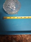 Add a touch of vintage charm to your home with this beautiful crystal clear glass candy dish. The dish is footed with a lid and stands at 7 inches tall. Its triangular shape adds a unique touch to its design. This two-piece set includes one compartment to hold your favorite candies or small treats. It is made of high-quality glass material and is perfect for any occasion. The dish is in excellent condition and is sure to impress your guests.
