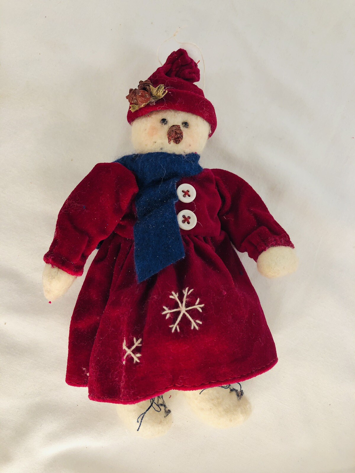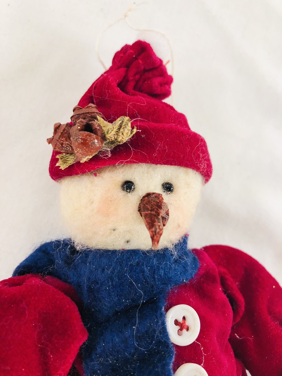 Vintage velvet Stuffed Fabric Christmas Ornaments 7" Snowmen Lot of 2 Both of these are in very good condition - they come from a smoke free environment. one is a boy and the other is a girl - there clothes are velvet and body is made of felt. Hassle free return Be sure to add me to your favorites list ! MANY MORE ITEMS AVAILABLE IN OUR EBAY STORE! BUY MORE AND SHIP ITEMS TOGETHER. Check out my eBay Store!