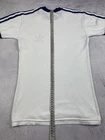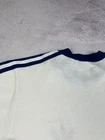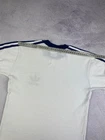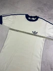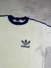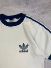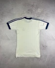 Rare Vintage 70s 80s Adidas Trefoil Ringer Retro T-Shirt in classic White/Blue colorway. A true piece of Adidas history and an iconic retro collectible for fans of vintage sportswear. Condition: The shirt shows signs of age with several yellow stains (clearly shown in photos). Despite the flaws, it remains a highly desirable and hard-to-find item for collectors. Please review all photos carefully for exact condition and measurements. Don’t hesitate to ask any questions before purchase.
