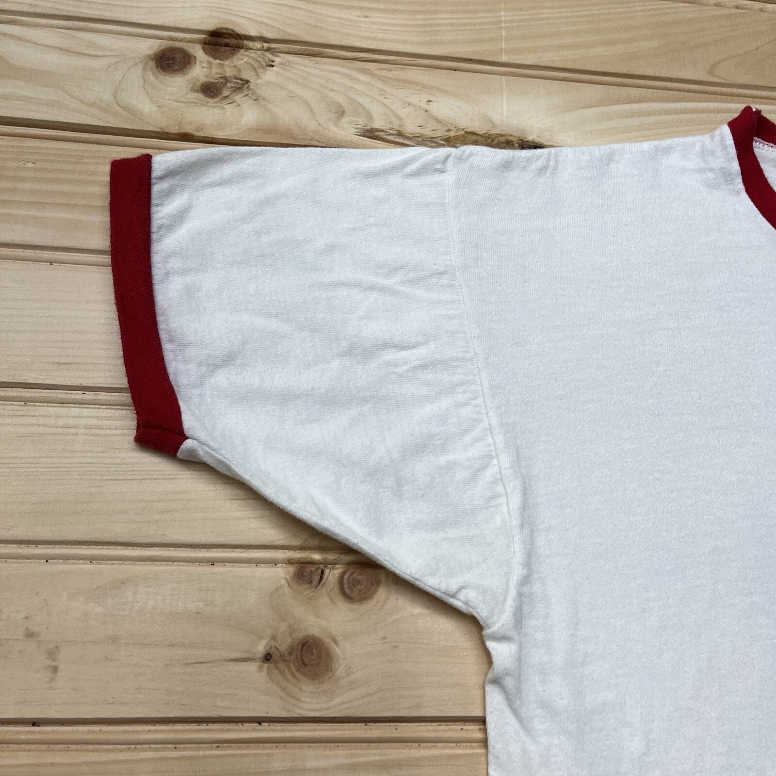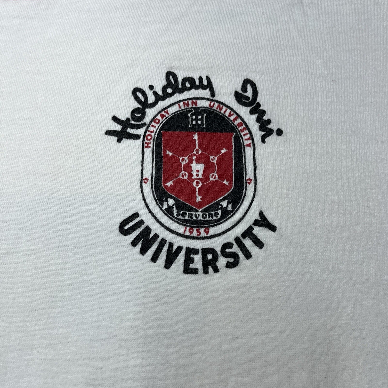 This vintage 70s Champion ringer tee is a true gem! The retro Holiday Inn University College crest gives it such cool nostalgic vibes. The fit is perfect for a size L, super soft with that broken-in vintage feel. Love the unique faded colors and slight distressing—adds so much character. Definitely a standout piece in my collection!