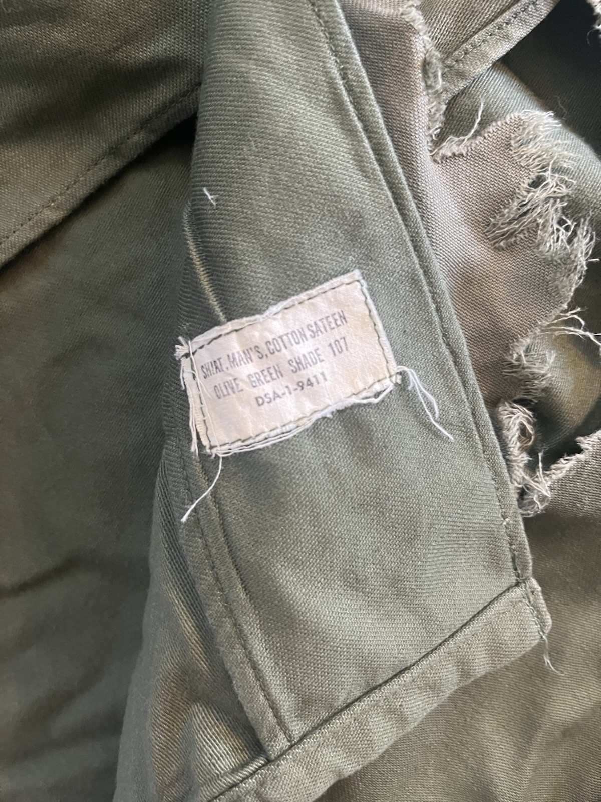 The Vintage Distressed 70's Army Button Down is a stylish and on-trend military jacket for men. Made from durable cotton material and featuring a classic button-down collar, this jacket has a unique distressed look that adds character and charm. The size is a regular fit with a medium size, perfect for a comfortable and flattering look. The jacket comes in a striking green color, making it a versatile and eye-catching addition to any man's wardrobe. Could make for a good DIY repair project