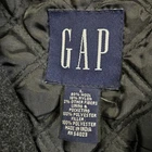 This 70's Vintage Gap Wool Coat Jacket in Size Large is a classic piece with a mid-length, zip closure, and quilted lining. Made from wool with a polyester lining, this charcoal tweed jacket is perfect for travel, casual, or business occasions. With a nautical, outdoor, and timeless theme, this vintage piece from Gap is a stylish and durable addition to any man's wardrobe. Ideal for outdoor activities like tennis or golf, this jacket combines practicality with a retro charm.