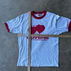 VINTAGE VALENTINES LOVERS RINGER SHIRT HANES 70S LARGE RED MENS beautiful color measurements, and tag shown in pictures item is preworn and may have defects shipping every wednesday and sunday