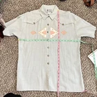 Vintage JG by Joyce 6P Southwestern Embellished Short Sleeve blouse 70’s Blue. This beautiful vintage button down blouse has rhinestone and stud embellishments as well as half sphere buttons. See photo(s) for measurements. Next business day shipping! Smoke free home!