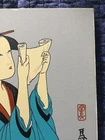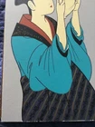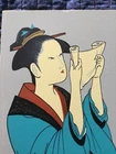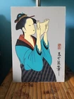Mark Coomer -read about the artist and his process in photo section Vintage from the 1970’s Limited edition Serigraph on Masonite Board “Geisha With Scroll” Signed in plate 9” X 12.75” Very good condition,look closely at pictures Beautiful,strong colors Stored very carefully away from heat and moisture Display on an easel ,leaning against a wall,on a shelf,frame it without glass,or add a hook on the back and hang it I have a similar but different serigraph called “Geisha with Cage” for sale ,too See photo section ,The two look really good together Your item will be carefully packed and shipped out the day of or after your payment is made …..