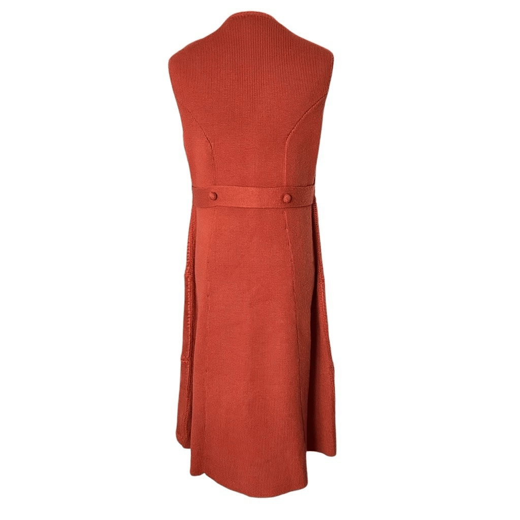 Vintage 70s Ms. Today Suede Leather Crochet Button Front Dress in Rust. Great used vintage condition with some wear for age. There are a couple loose buttons that need to be fixed. Top button missing. Vintage Size 14. Fits like a Medium. See measurements for exact fit. Chest - 17.5” Waist - 16” Hip - 21” Length - 41.5” SKU 102824