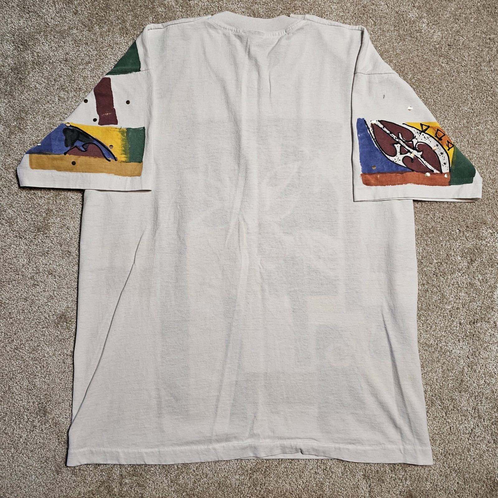incredible shirt, just as pictured! wearing it as i type this. packaging was incredible. i sell stuff on etsy and depop and i am taking notes. love the idea of recycling old cards from trivia games and other stuff that probably just often ends up in a landfill. fast shipping as well. thank you so much!!