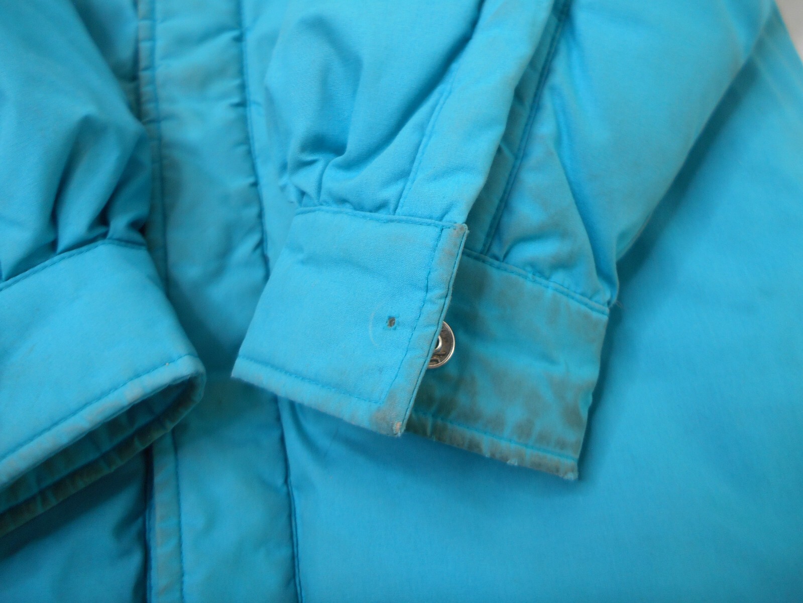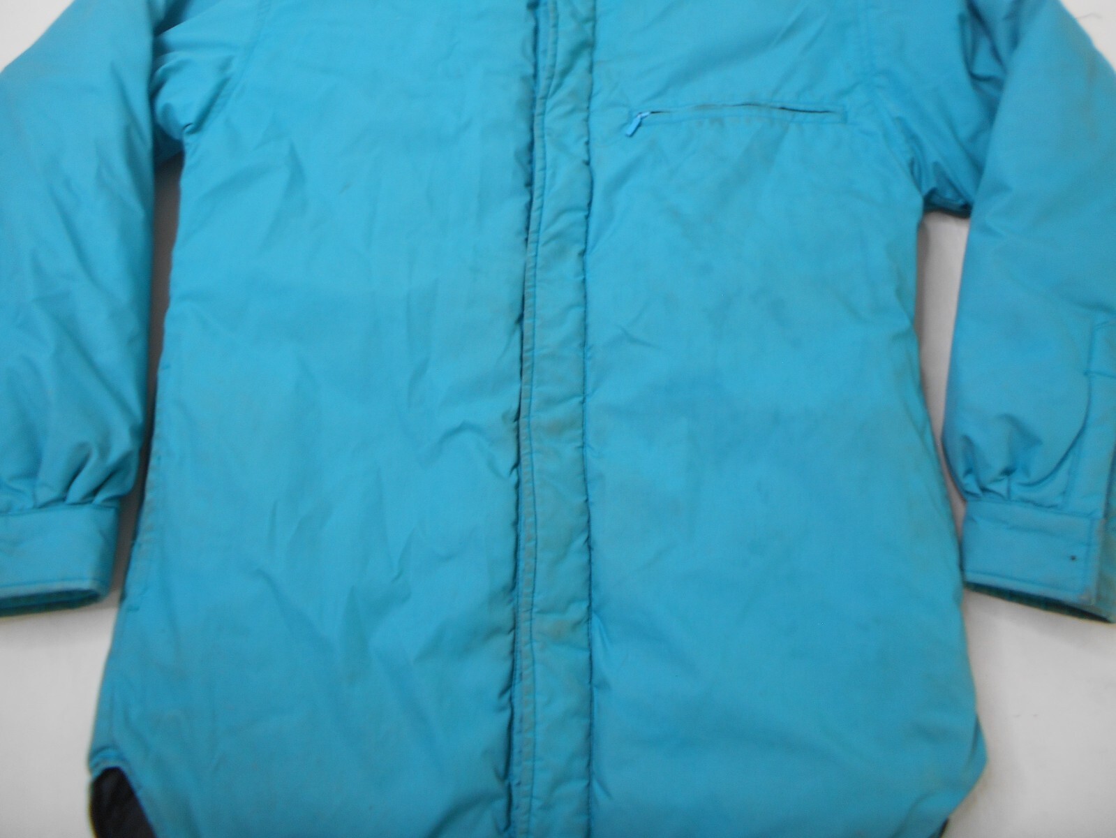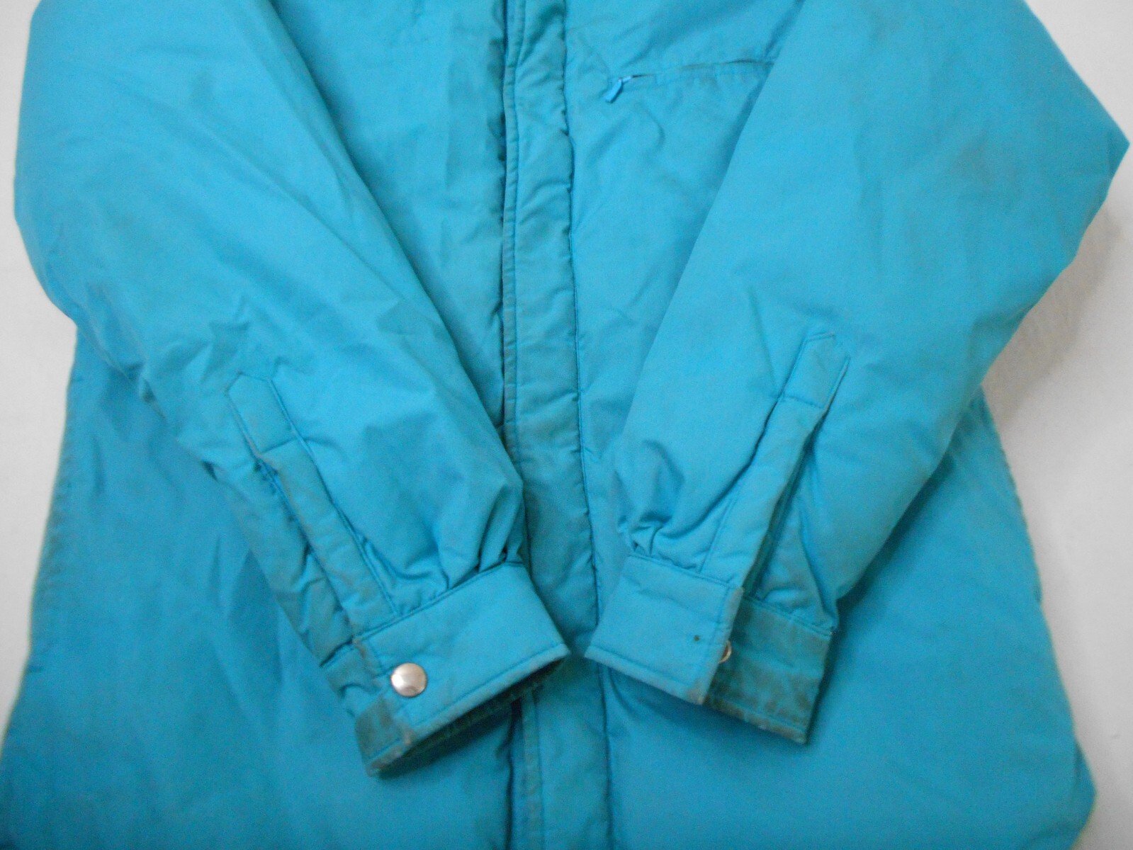 This Item of Used clothing has some wear and such from use and age. All of the things that are wrong with it can be found in the condition description and also there are pictures of them as well. Also the measurements are included in the photos near the end. Please refer to both before buying. Message me if you have any questions! This is a vintage 80s LL Bean men's coat in size Small. It is a teal-colored quilted puffer jacket made from softshell polyester with a down insulation. The coat features a zipper closure, embroidered accents, and a stand-up collar. It has a mid-length style and is suitable for winter, fall, or spring occasions, particularly for skiing. The design is inspired by the 80s ski theme and the model Jim Whittaker.