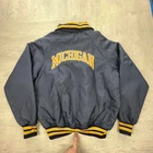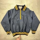 Vintage 80s University of Michigan Wolverines navy yellow half zip Harvard Clothing coat jacket NCAA college sportswear streetwear boho Size: L Pit to pit: 25 Length: 28