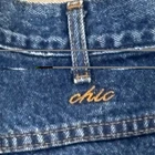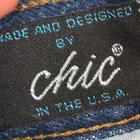 This product is a rare find: Vintage 80s Mom Jeans in a size 18 with a chic tapered leg and pleats. These high-waist jeans in a classic blue color are from the brand CHIC, made in the USA. With a zip and button closure, these regular-fit jeans have a 29-inch inseam, perfect for women looking for a unique and stylish piece from the 80s era.