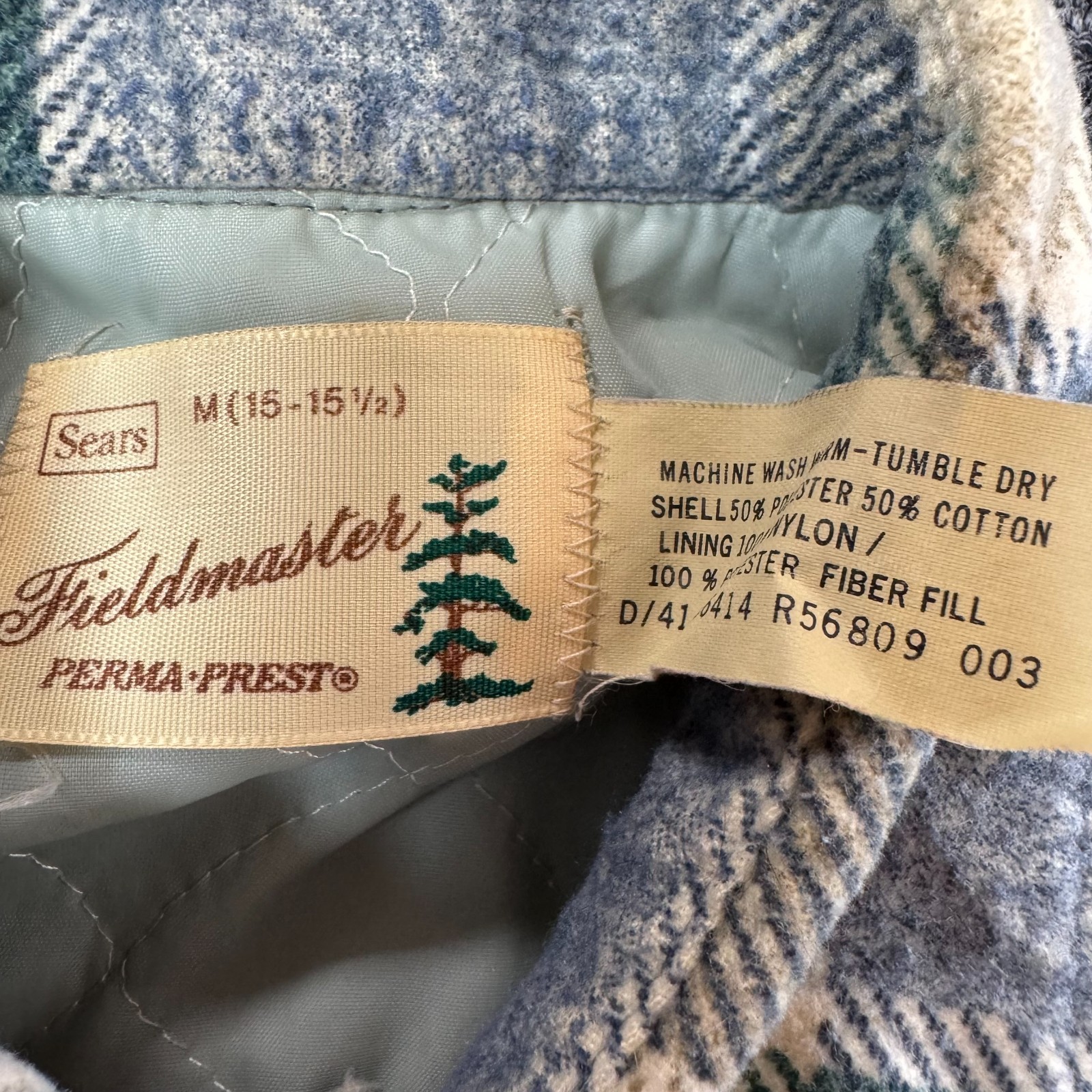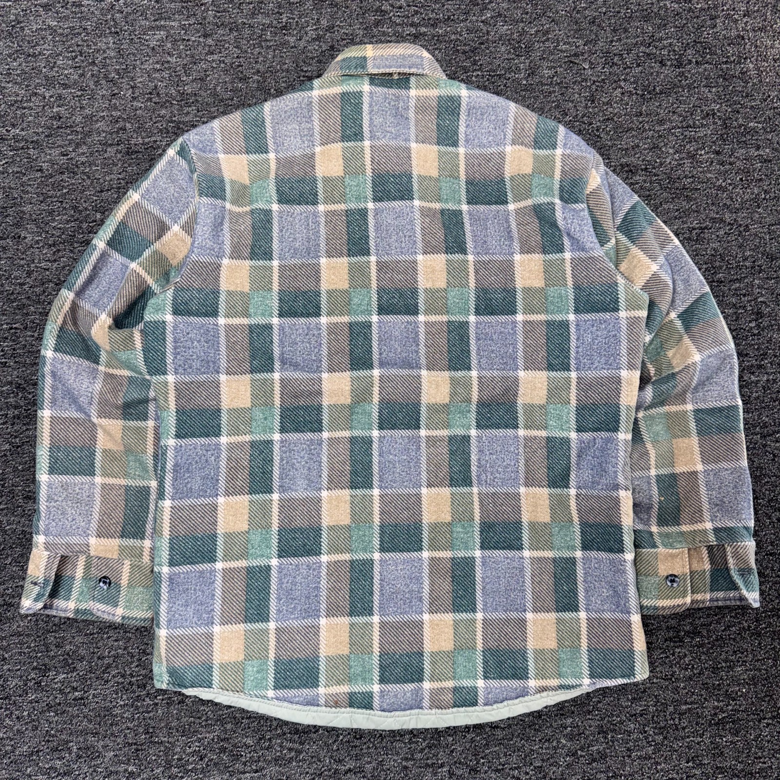 Vintage 70s SEARS Flannel Outdoors Workwear Button Shirt Mens Sz XL Blue Lined