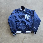 Vintage 80s STARTER Satin Bomber Diamond Jacket NEW YORK YANKEES L Logo Vintage condition The exterior have spots, marks, etc all over! Have been washed , but not spot treated Please check out photos for details Chest: 25 Length: 26