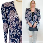 So sweet vintage 80s Stuart Alan floral lightweight knit tapestry jacket! Padded shoulders. Adorable decorative buttons. Vented front hem. Completely cute! Made in the USA back in its day Measures flat Shoulder ~18” Chest 21 Sleeve 22 Length 23.5 •Size: 16/XL •Condition: Excellent vintage – this was once part of a set but is flying solo now. Still super cute on its own! •Color: blue pink gray Bundle for combined shipping! Pictures/video are part of the description. Measurements are approximate and for guidance. Color may vary by screen. Sizes vary between designers. ALL preowned items can be expected to show normal signs of wear. Smoke free, DOG FRIENDLY home. Orders will be shipped in clean recycled packaging whenever possible. 10% of net sales go directly to charity at my local food bank. Tags: vintage floral cottagecore grannycore cottage style grandmillennial coquette plus size 80s spring summer fall transitional