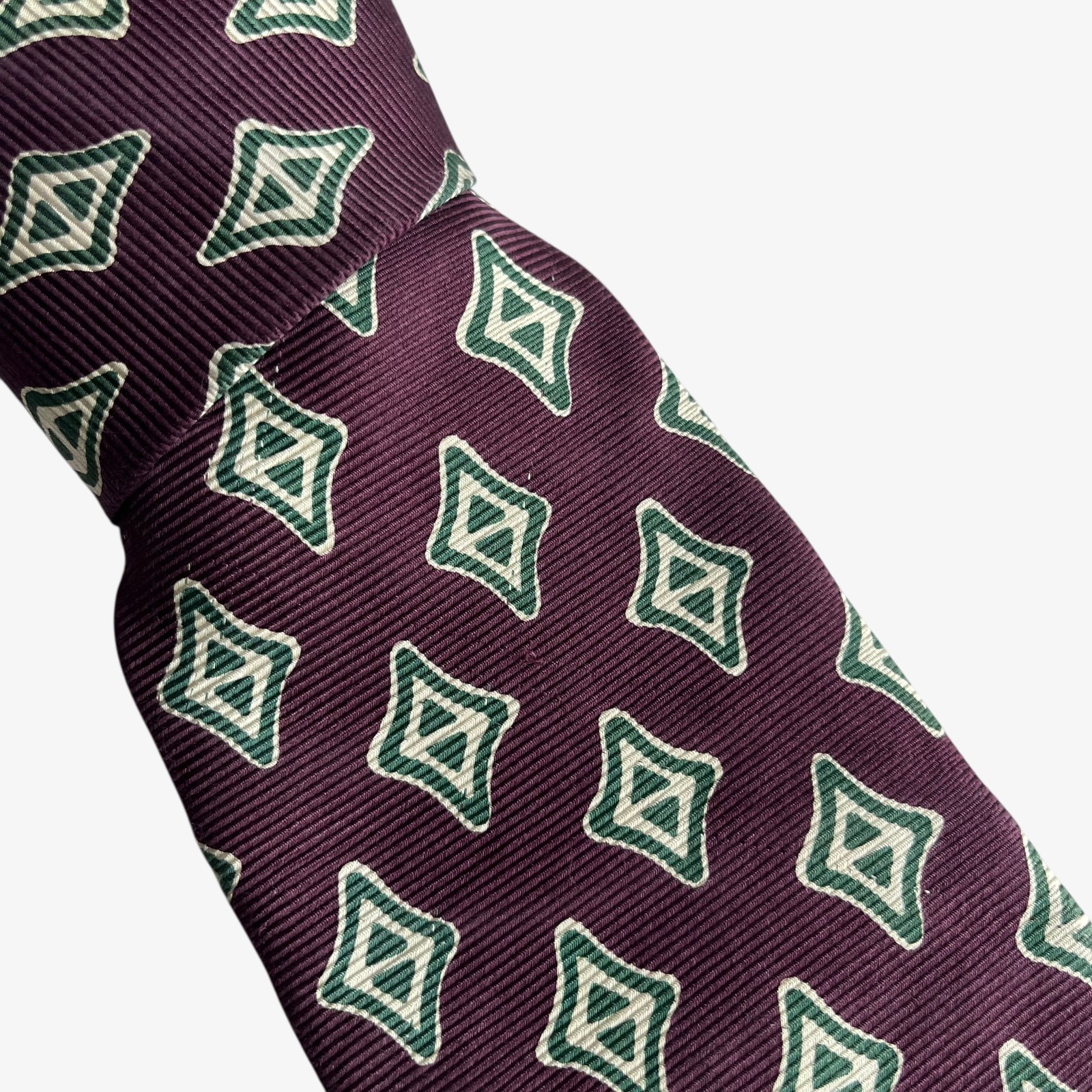 Hickey Freeman Silk Tie Purple Geometric Medallion Men’s Necktie Made in Italy