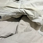 Vintage Structure Anorak Mid-LengthJacket Extra Pockets Travel Coat Barn Field Safari Hunting Fishing Waist Drawstring Cinch and Hemline Drawstring Cinch. Full zipper closure with covered snaps for wind protection. Snap closure long sleeves. Full zip closer with stand up collar. Plenty of pockets: 2 snap closure expandable breast pockets, extra large expandable front pockets with flap and snap close, additional zippered exterior small pockets on pocket flaps. One large pocket has a drawstring cinch and material loop. The second large pocket has a leather horizontal that can be used to hang accessories. On the inside is a zippered breast pocket. Another security pocket is hidden on the interior back with a hook-loop closure. Men's Tag Size Medium Chest 44 Length 32 inches. Interior snag hole near hidden pocket, small spots and interior collar discolor that may come out with extra spot cleaning. Beige Cotton Blend Coat.