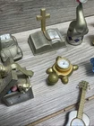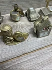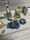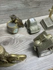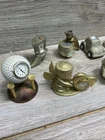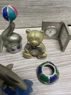 This vintage Elgin mini clock figurine lot features a variety of charming animals, including a golfing cat, a guitar-playing bear, and a dolphin. Crafted from brass, these figurines are perfect for collectors or as unique decorative pieces. The time period of manufacture is modern, and the country/region of manufacture is unknown. Each figurine in this lot is in great shape and has been well-maintained. They make for a fantastic addition to any collection or as a standalone piece. This lot is perfect for those who love collecting unique and unusual items.