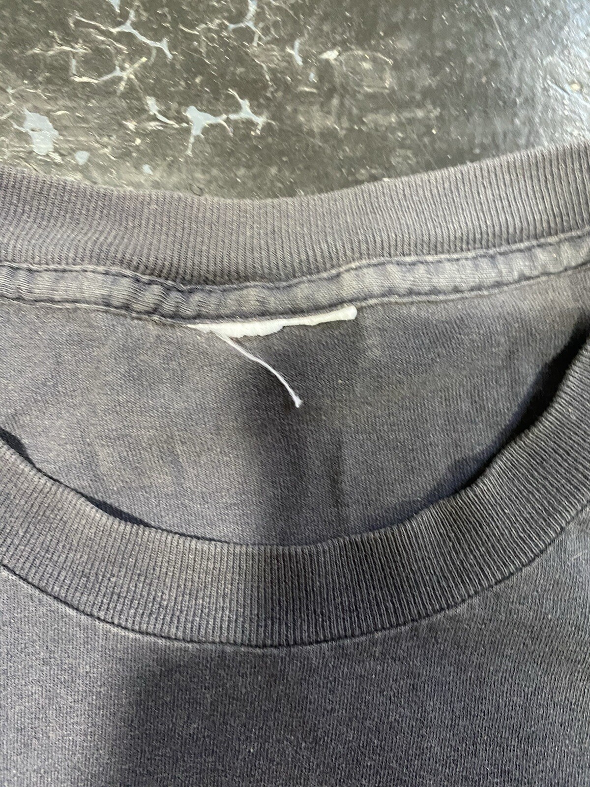 This vintage 90s Reebok shirt is a classic piece featuring a faded black color and a single stitch design. It is a size Large and designed for men, with a regular size type. The shirt captures the essence of 90s fashion and is perfect for those who appreciate retro style. Perfect for casual wear, this Reebok shirt is a timeless addition to any wardrobe.