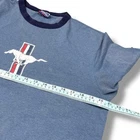 • Size: Men’s Medium (Ptp 21”;‘length 26”) • Color: Blue Gray with Navy Trim • Material: Likely cotton blend (tag not fully visible, feels soft and comfortable) • Features: Ford Mustang logo, contrasting ringer details, vintage appeal • Condition: used, graphic shows minor cracking (adds to vintage charm); pin holes show on the back, please check photo cleafully Hashtags: #VintageTee #FordMustang #RingerTee #RetroStyle #CarLovers