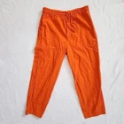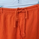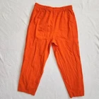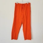 Vintage 90s Gitano High Rise Orange Pants Women's Large Double Drawstring Cotton Vintage 90s Gitano cotton pants in a size large. - Unique double drawstring waist - Bright orange color in a lightweight cotton - Comfy elastic waistband with belt loops - Straight leg, high rise, and ankle length short inseam - Two side pockets - Two tiny faint spots, otherwise great vintage condition! Super fun pants for casual 90s / y2k looks! 100% cotton. Made in Turkey. Lay flat measurements: Waist: 15.25 in Inseam: 25 in Rise: 14 in vtg // gitano // 90s // y2k // funky // streetwear // bright // retro // turkish cotton // linen look cotton // cropped // comfortable // fall // halloween // spring // summer // vacation