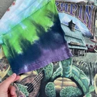 Vintage 1999 Grateful Dead t-shirt. Terrapin Station tie dye shirt on Liquid Blue tag, dated 1999. Very thrashed and distressed all over Tagged men’s size Medium Pit to pit: 20” Shoulder to bottom hem: 28” Please see last two pics for holes in underarms and near neck (K)