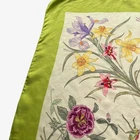 £105 On Casspio's Dream Vintage Vintage 90s Gucci Floral And Insect Print Green Silk Scarf. Designed By Vittorio Accornero Hand Rolled Edges Luxury Designer 100% Silk Measurements: Width: 33 inches Length: 35 inches Condition: Fair. Signs Of Wear Around The Item. Slight Colour Run.