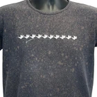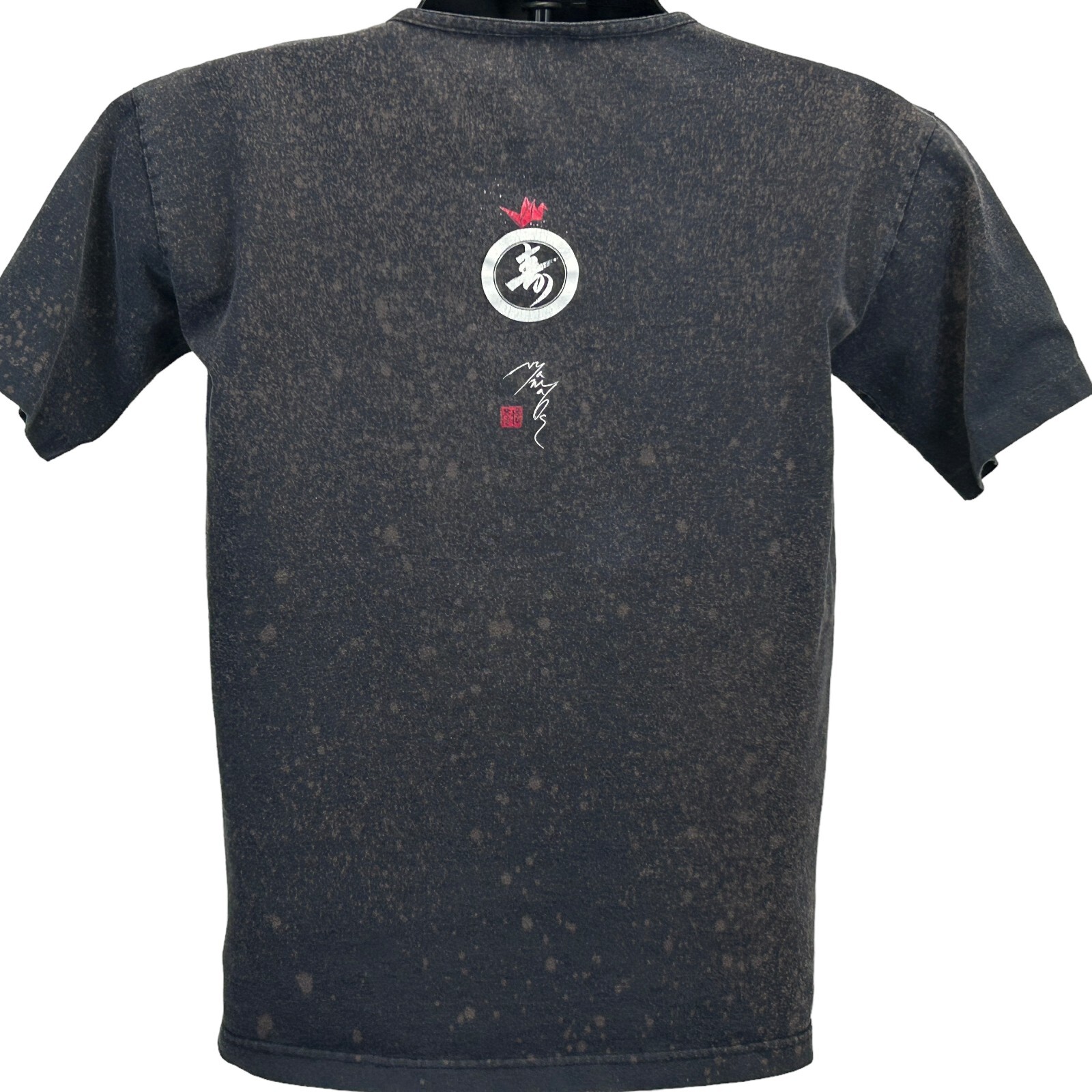 Origami Paper Crane Orizuru Vintage 90s T Shirt Japanese Art Black Bleach Splatter Murina Single Stitch Made In USA Graphic Tee Condition: Has image cracking, faint spots, spots on one cuff, and a tiny pinhole has been patched from the inside. The hole should not spread further and skin will not show through it. No other flaws noticed. See photos. Size and Measurements: Mens/Unisex Medium Width 19" - Underarm to underarm Length 25" - Measure from top of shoulder at the edge of collar to the bottom of the shirt