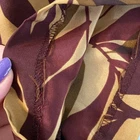 Vintage 100% silk blouse by Jones New York Made in Korea Collared with button front and short sleeves Brown and burgundy leaf design against tan See photos for approximate measurements One sleeve has been re-hemmed, otherwise in great condition The OG of resortwear layering pieces