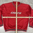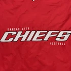 The product is a vintage 90s Reebok Kansas City Chiefs windbreaker jacket in size XL for men. It features a V-neck pullover style in red color, suitable for football fans and collectors. The jacket is associated with NFL player Joe Montana and the team Kansas City Chiefs in the National Football League (NFL).